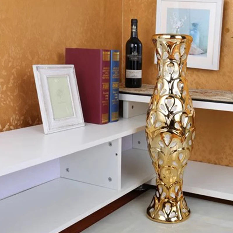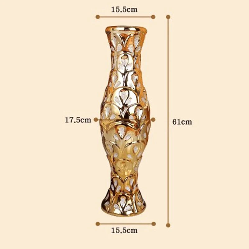 Setzen Sie auf Eleganz im Großformat mit diesemgroße goldene BodenvaseEntwickelt inKeramik, besticht durch seine glänzende Oberfläche und sein schlankes Design. Perfekt alsBlumenvaseoder einfach inDekorationsobjektkleidet es stilvoll eine Zimmerecke, einen Eingang oder ein Wohnzimmer. Diesesgoldene Keramikvasebringt einen Hauch vonmoderner Luxuszu jedem Interieur.