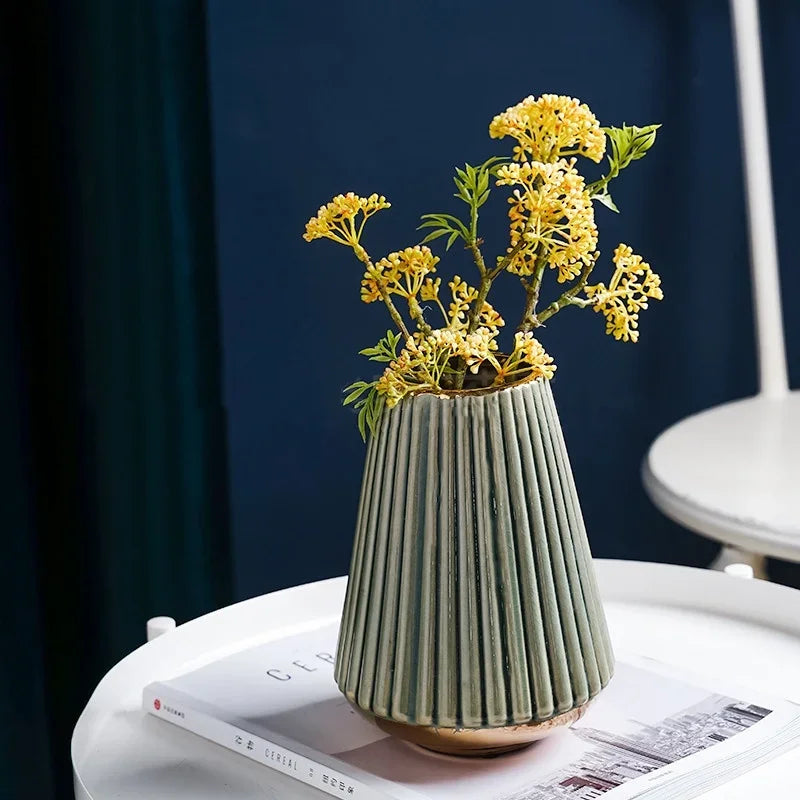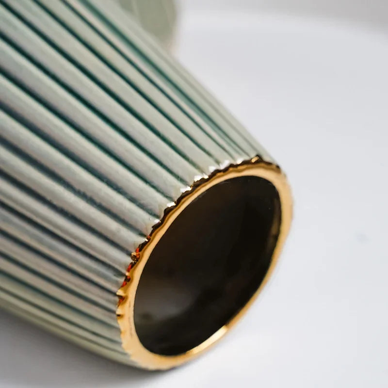 Bringen Sie einen Hauch natürlicher Frische in Ihr Interieur mit diesemgrüne KeramikvaseSeine pflanzenähnliche Farbe und die elegante Textur machen ihn zu einem dekorativen Objekt, das sowohl beruhigend als auch trendy wirkt. Ideal zum Aufstellen von Blumen oder einfach zum Verschönern eines Möbelstücks, passt er perfekt in eine böhmische, natürliche oder moderne Einrichtung.