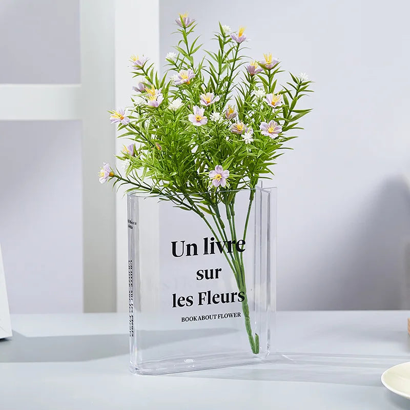 Verleihen Sie Ihrer Dekoration eine originelle und moderne Note mit diesemtransparente BuchvaseSein kreatives Design in Form eines Glasbuches macht es zu einem dekorativen Objekt, das sowohl überraschend als auch elegant ist. Perfekt für Blumen oder als Tafelaufsatz.transparente dekorative Vasepasst perfekt in eine zeitgenössische oder minimalistische Atmosphäre.