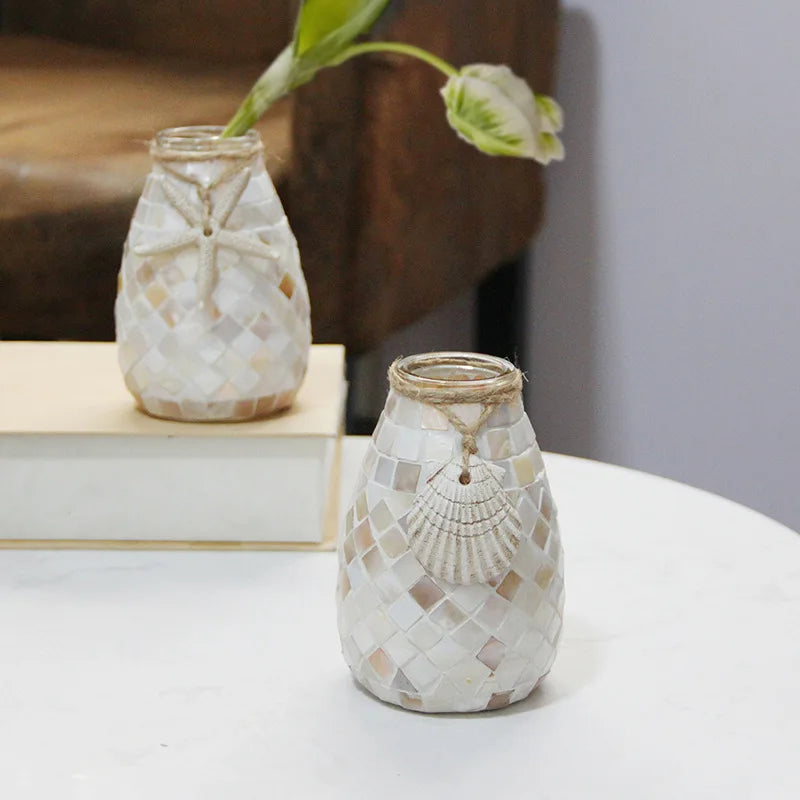 Bring a nautical touch to your interior with thisdecorative vase decorated with shells. Ideal for aseaside decoration, Thisvase with shell decorationcombines natural elegance with summer style. Perfect for enhancing your space with a fresh and authentic ambiance.