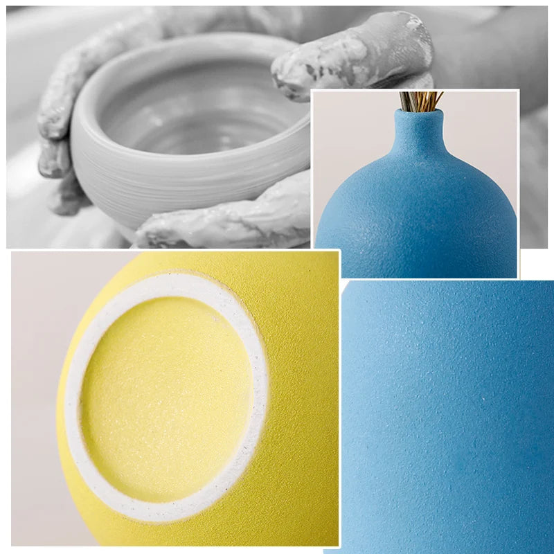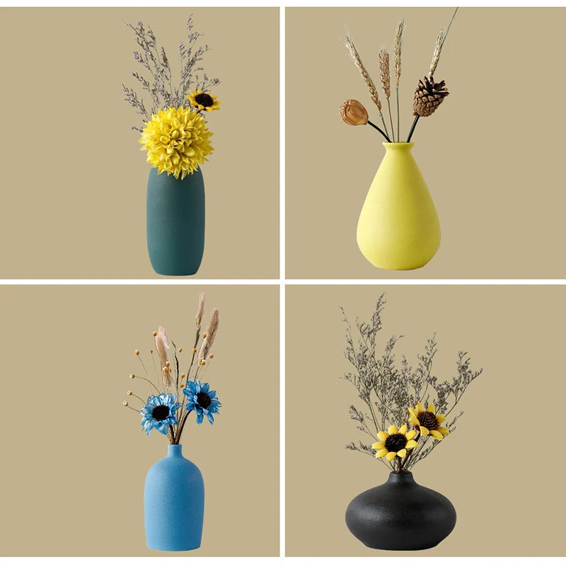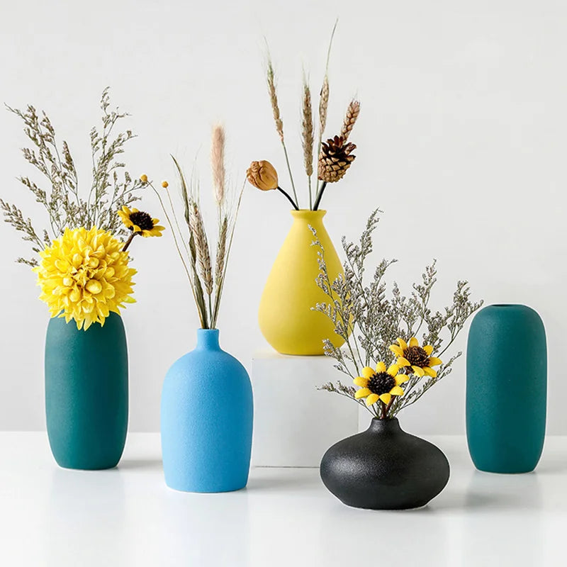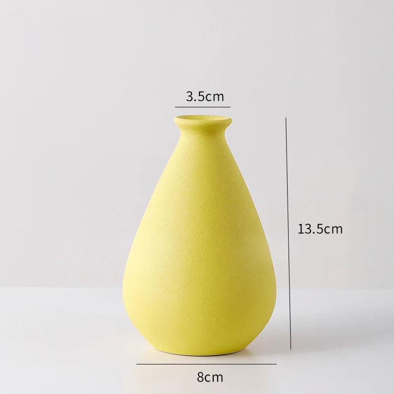 Ces petits vases en céramique, disponibles en jaune, vert, bleu et noir, séduisent par leur design compact, leur forme élégante et leur palette de couleurs intenses. Idéals pour accueillir quelques fleurs séchées ou simplement comme objets déco à exposer en groupe ou séparément, ils ajoutent une touche de couleur et de modernité à votre intérieur. Leur style épuré s’adapte parfaitement à une décoration contemporaine, minimaliste ou éclectique.
