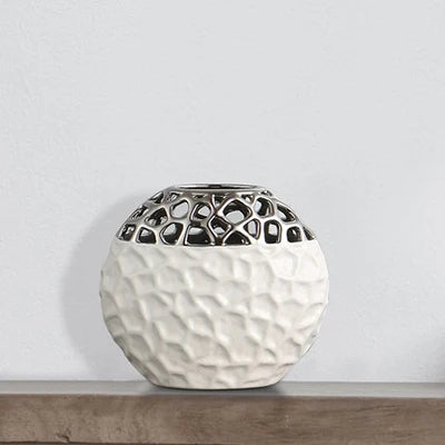 Apportez élégance et modernité à votre intérieur avec ce vase argent et blanc en céramique. Son design bicolore chic et sa finition brillante en font un objet déco raffiné, parfait pour une décoration contemporaine. Disponible en trois tailles, ce vase en céramique blanc et argenté s’adapte à toutes vos envies : en solo, en duo ou en trio pour un effet visuel harmonieux. Idéal avec des fleurs fraîches, séchées ou simplement en élément décoratif.