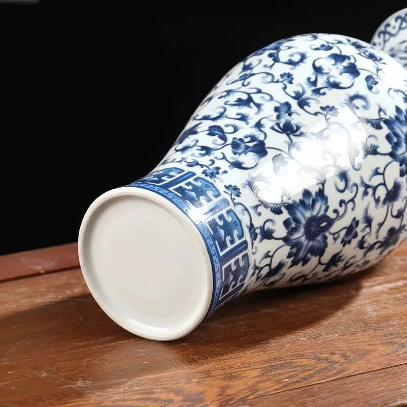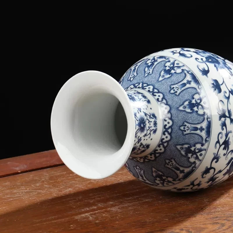 Ce vase en céramique blanc et bleu séduit par sa forme arrondie et son style audacieux. Le contraste des couleurs et les lignes douces en font une pièce décorative unique.