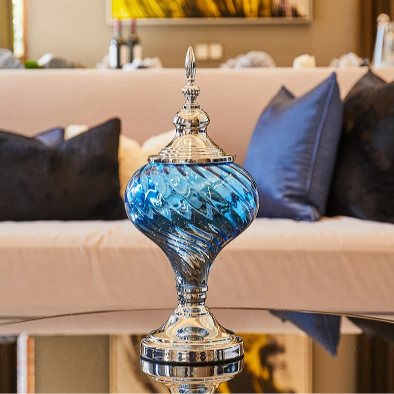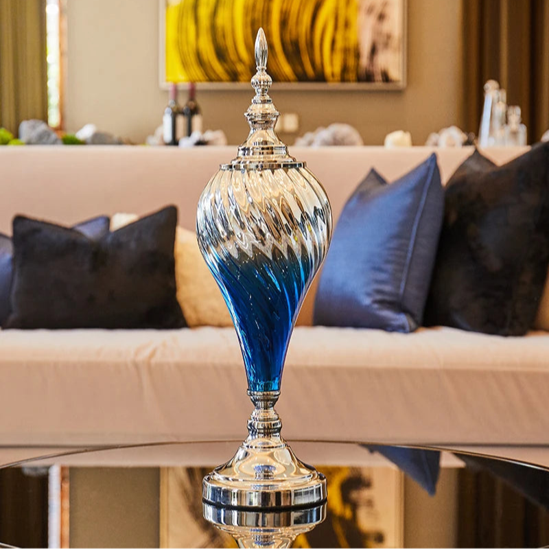 Ce grand vase en verre bleu saphir séduit par sa couleur profonde et élégante. Disponible en trois formes, il s’impose comme une pièce forte de votre décoration.