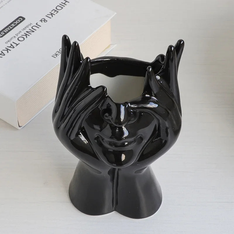 Ces vases en céramique noire, aux formes artistiques représentant un visage stylisé et une main sculpturale, apportent une touche originale et contemporaine à votre décoration. Leur design audacieux, à la fois graphique et expressif, en fait de véritables objets d’art qui attirent le regard. Parfaits seuls ou en duo, ils s’intègrent aussi bien dans un intérieur minimaliste que dans un décor plus éclectique, et subliment n’importe quel espace avec élégance et caractère.