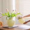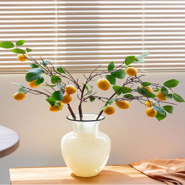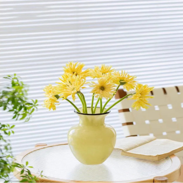 Ce vase en verre jaune séduit par son design épuré et sa teinte lumineuse qui capte la lumière avec élégance. Sa forme élancée et sa finesse en font une pièce décorative parfaite pour accueillir quelques fleurs fraîches, fleurs séchées ou pour être exposée seule. Idéal pour apporter une touche ensoleillée et moderne à votre intérieur.