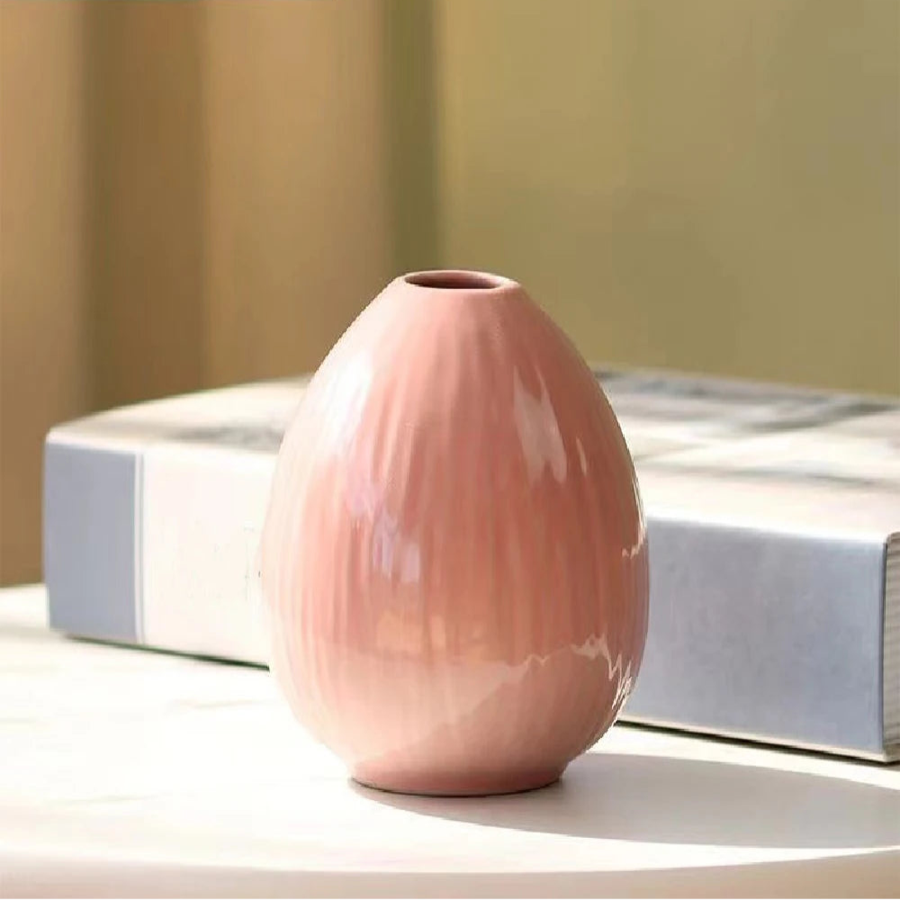 Ce vase en céramique rose pâle séduit par sa teinte douce et son design épuré. Idéal pour une décoration minimaliste, romantique ou contemporaine, il mettra en valeur une fleur unique ou un petit bouquet avec élégance.