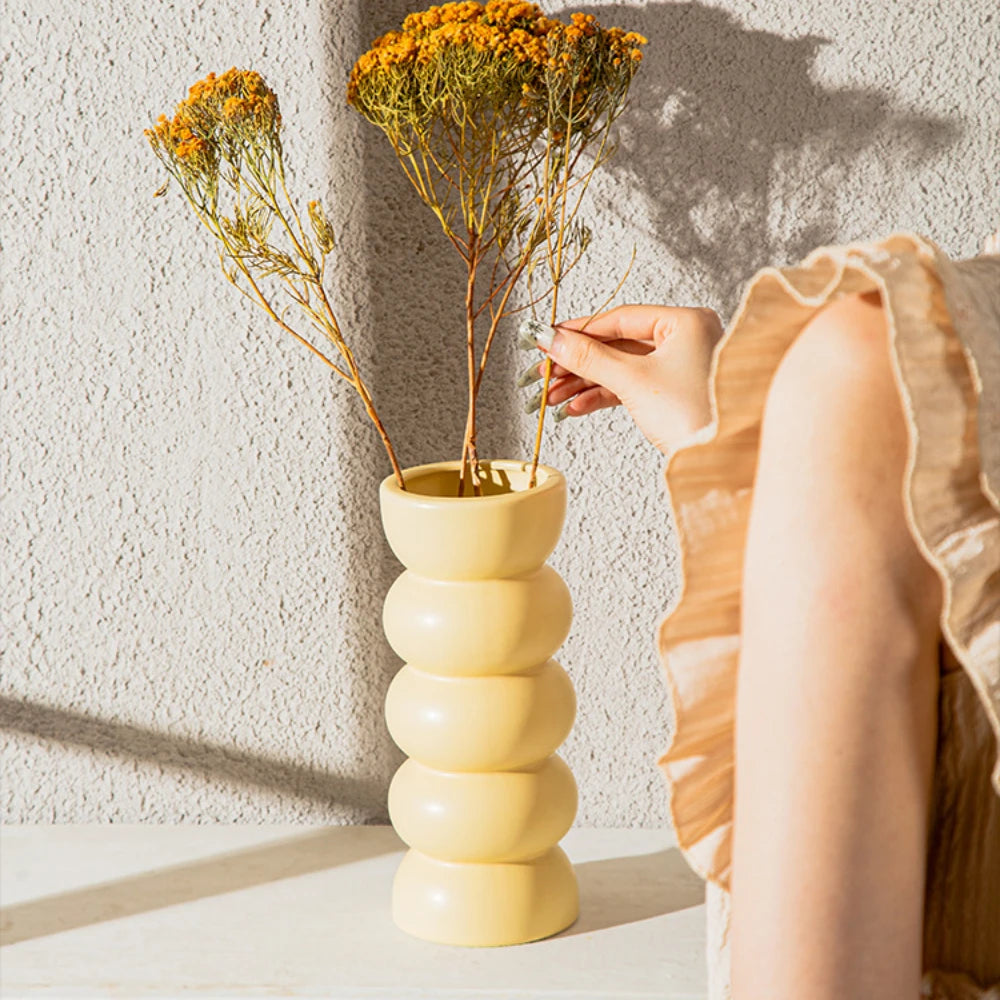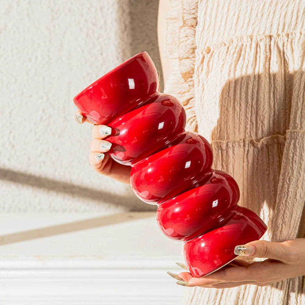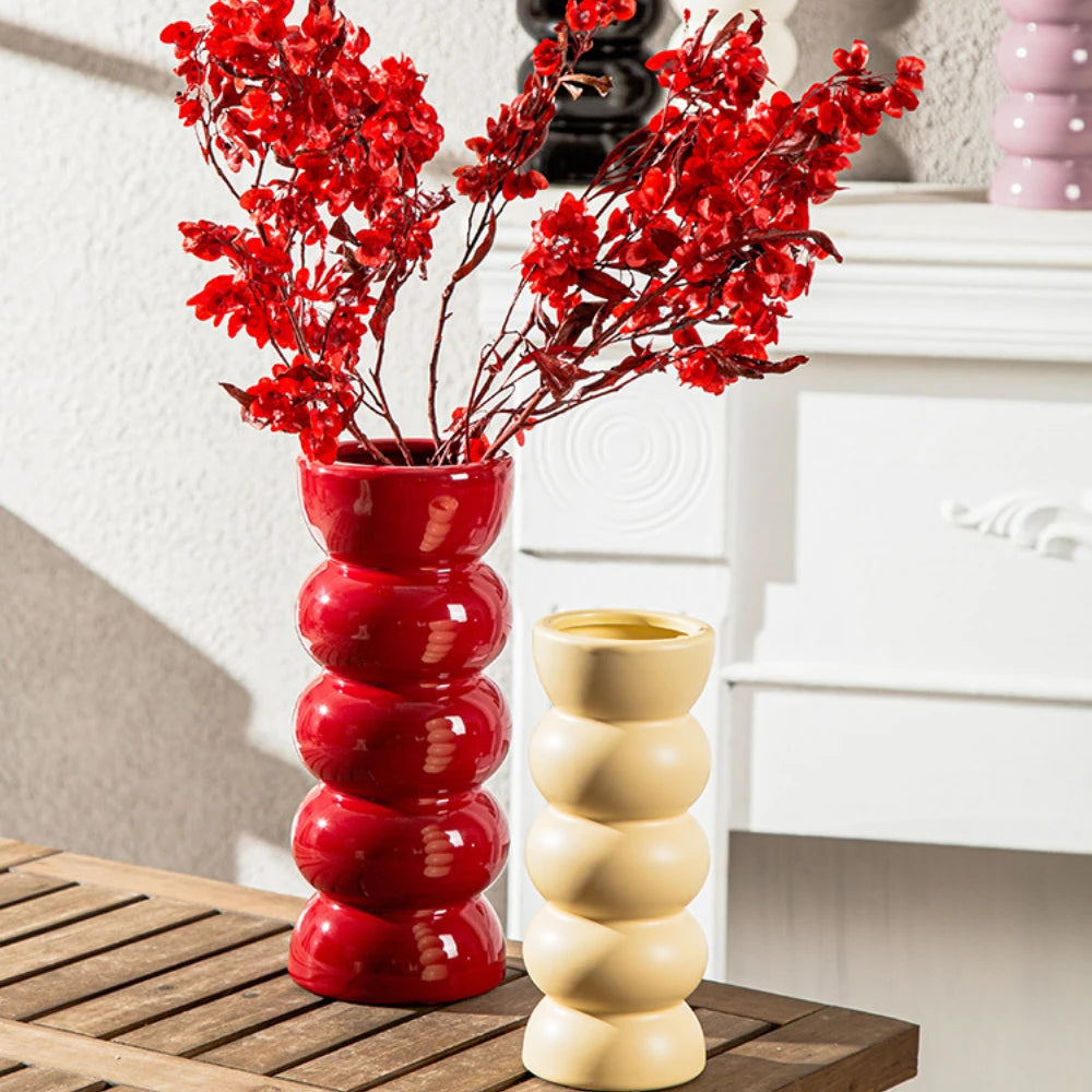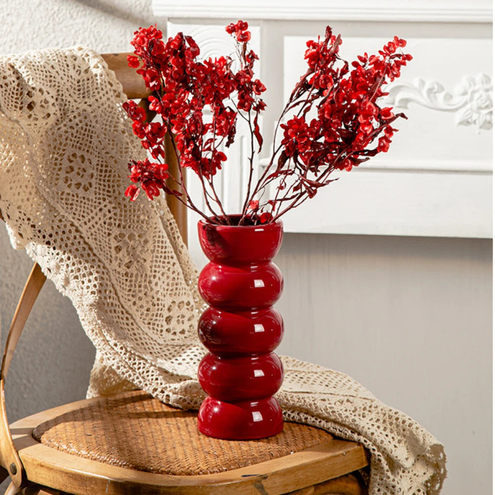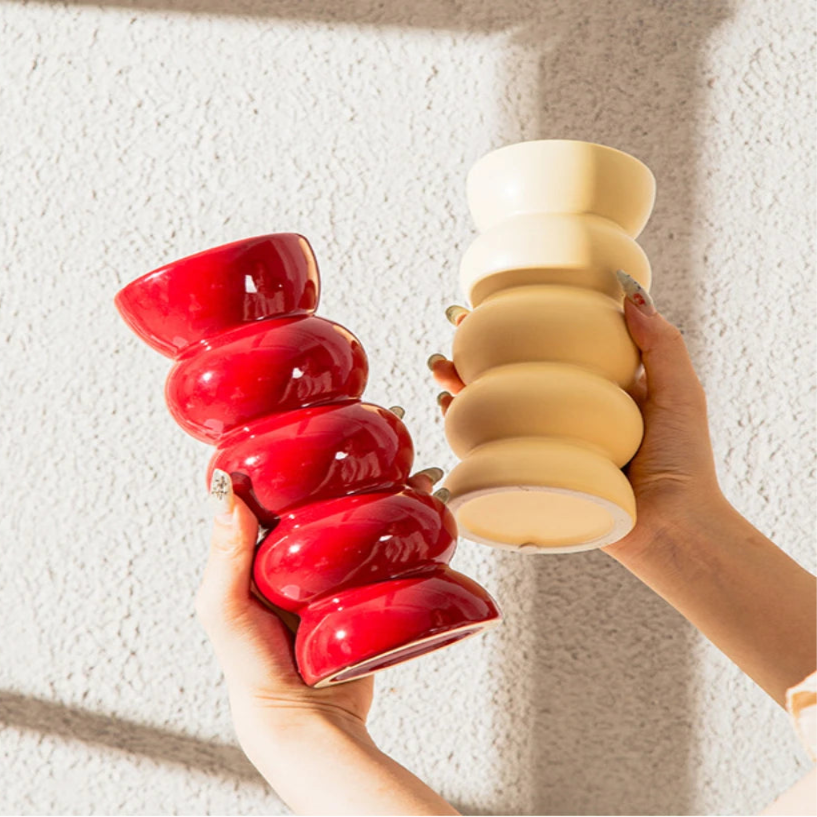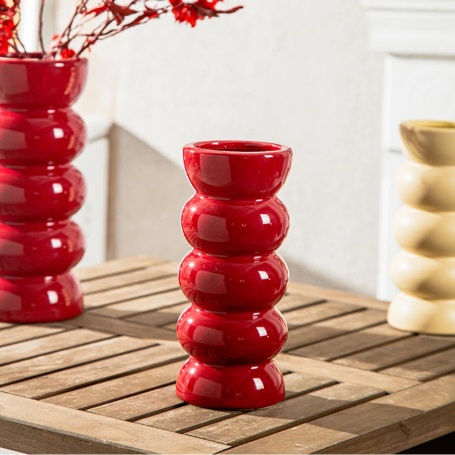 Ce vase rouge en céramique apporte une touche chaleureuse et moderne à votre décoration. Avec sa silhouette simple et sa finition lisse, il est idéal pour des fleurs ou seul en objet déco. Également disponible en beige pour s’adapter à tous les styles.
