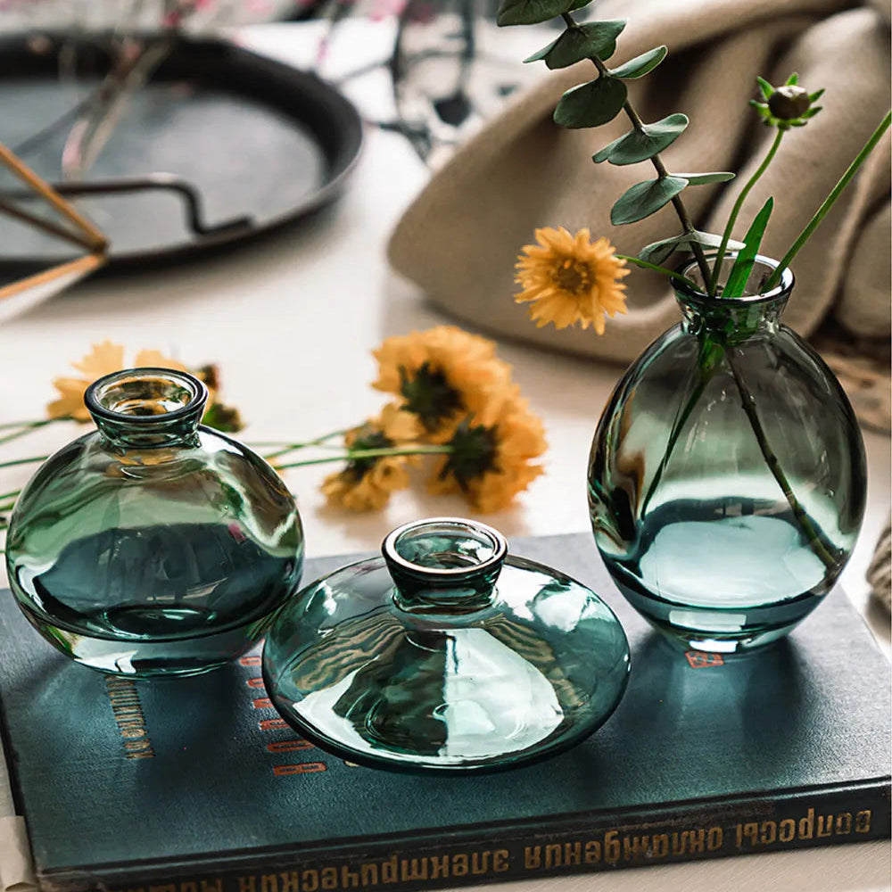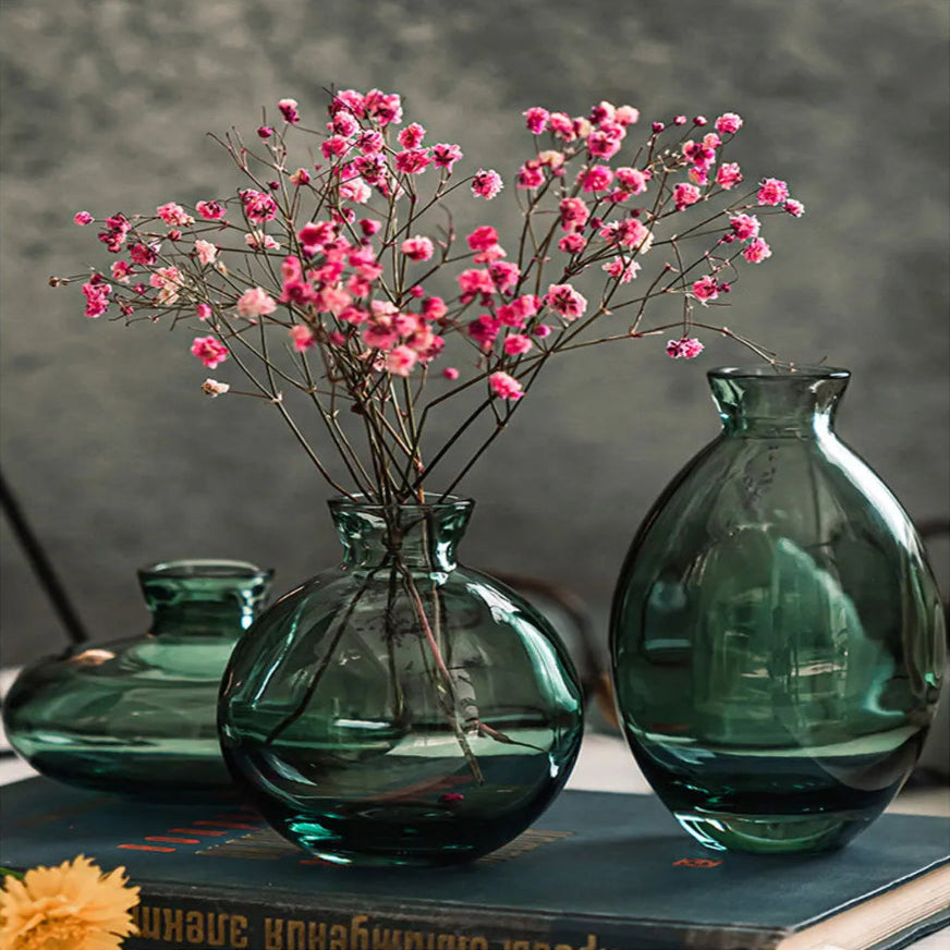 Cet ensemble de petits vases en verre vert émeraude séduit par ses formes assorties et son éclat raffiné ; parfaits pour sublimer une table, une étagère ou un coin déco, ils peuvent être exposés ensemble ou séparément pour apporter une touche lumineuse, élégante et pleine de fraîcheur à votre intérieur.