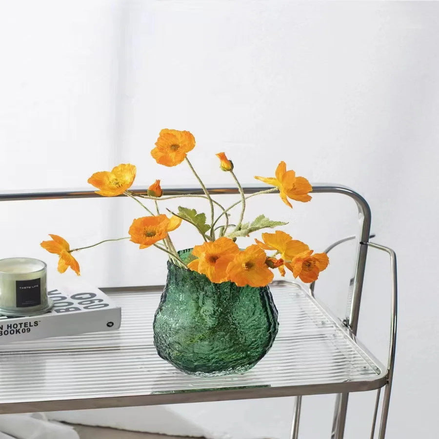 Ce vase en verre, au design arrondi et à la finition mate, se distingue par sa silhouette douce et contemporaine ; son ouverture fine le rend idéal pour quelques tiges ou fleurs séchées, mais il s’impose aussi seul comme une pièce décorative élégante qui ajoute une touche de modernité discrète à votre intérieur.
